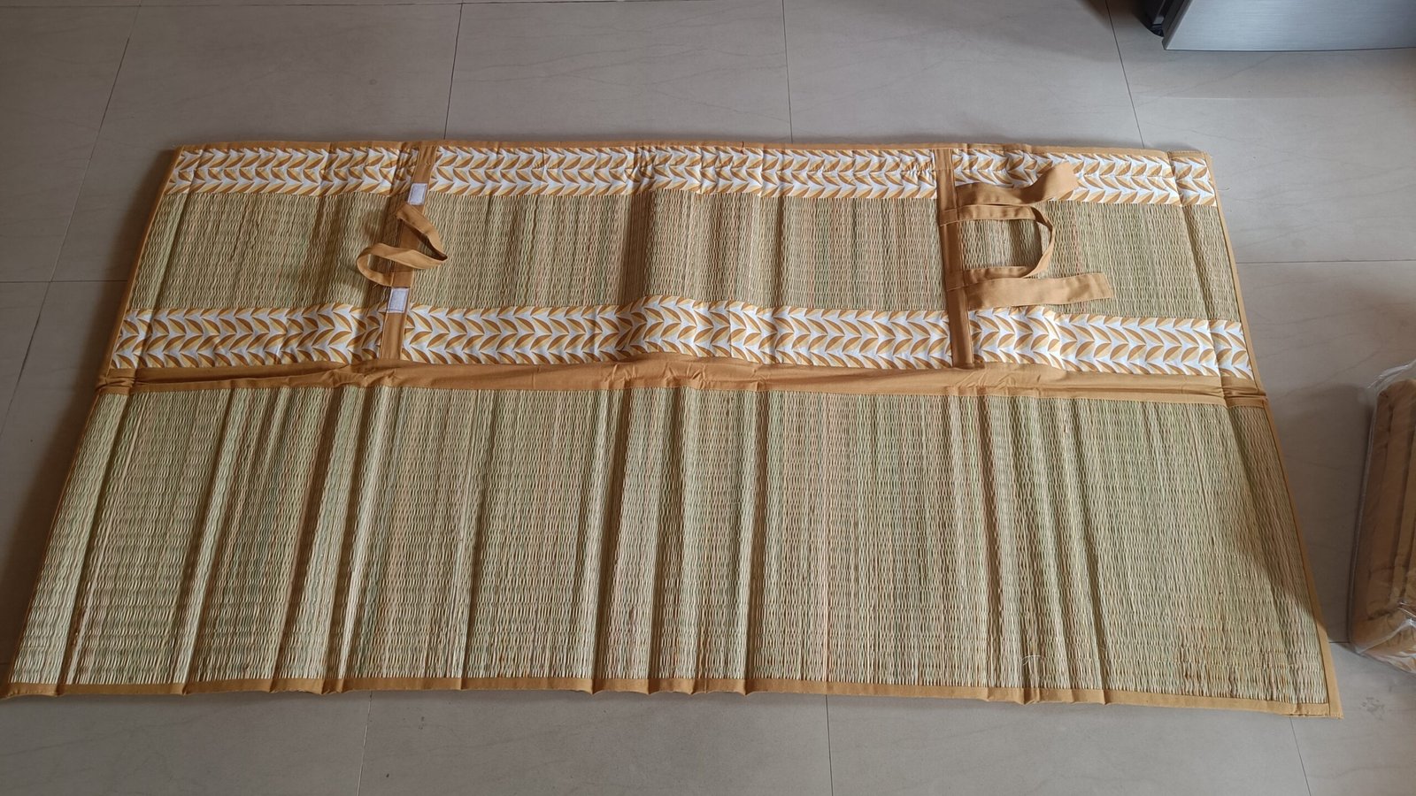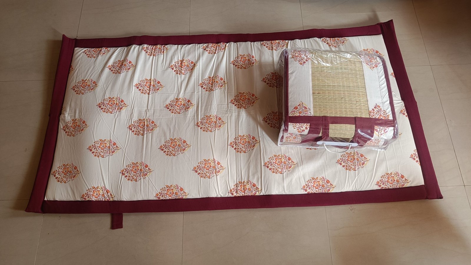Korai mat foam bed with korai at bottom awith cotton cloth at top with foam at centre.