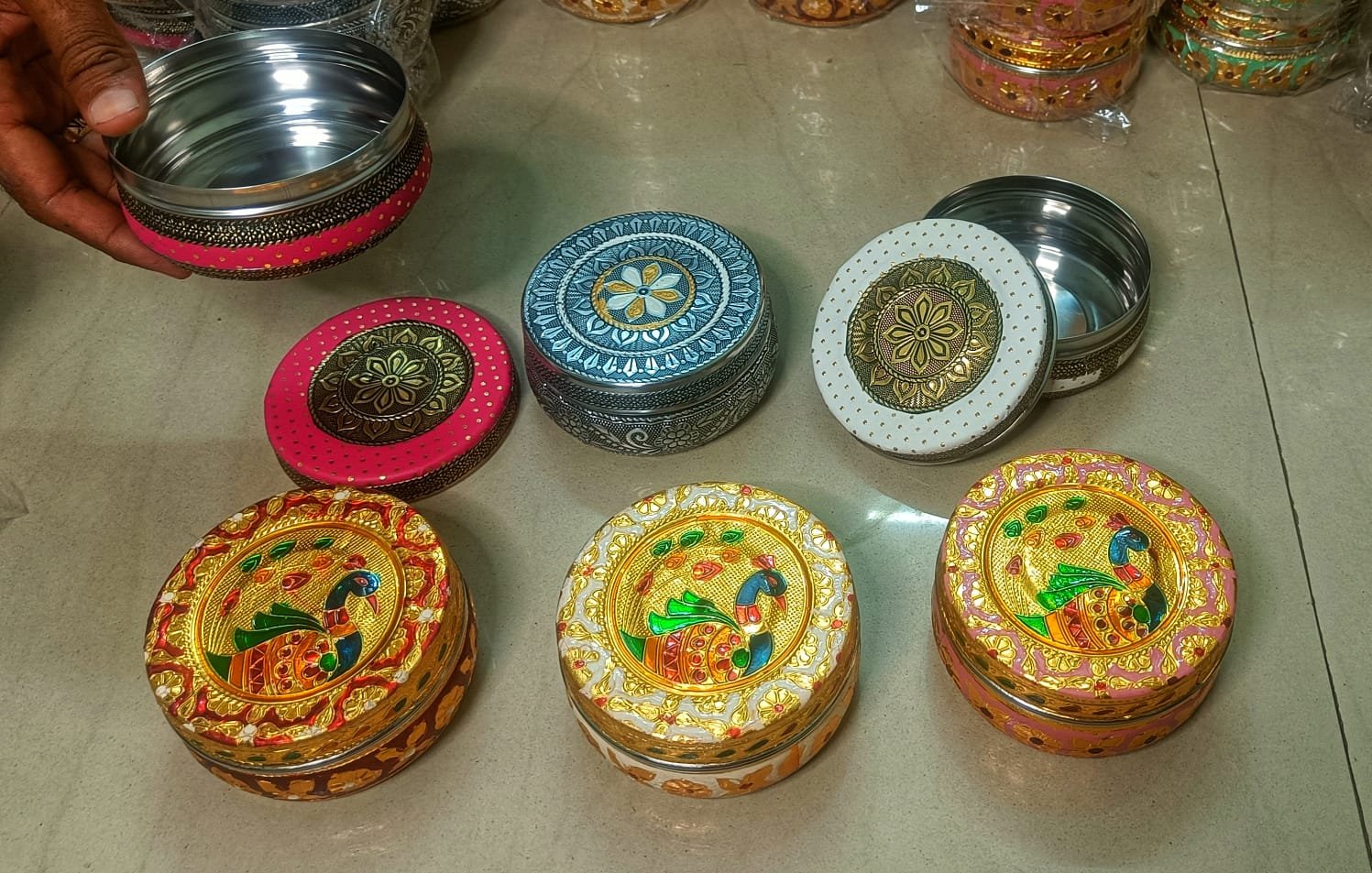 🌟 Meenakari Steel Box – 4×2” | Trendy Design Return Gift Box 🌟