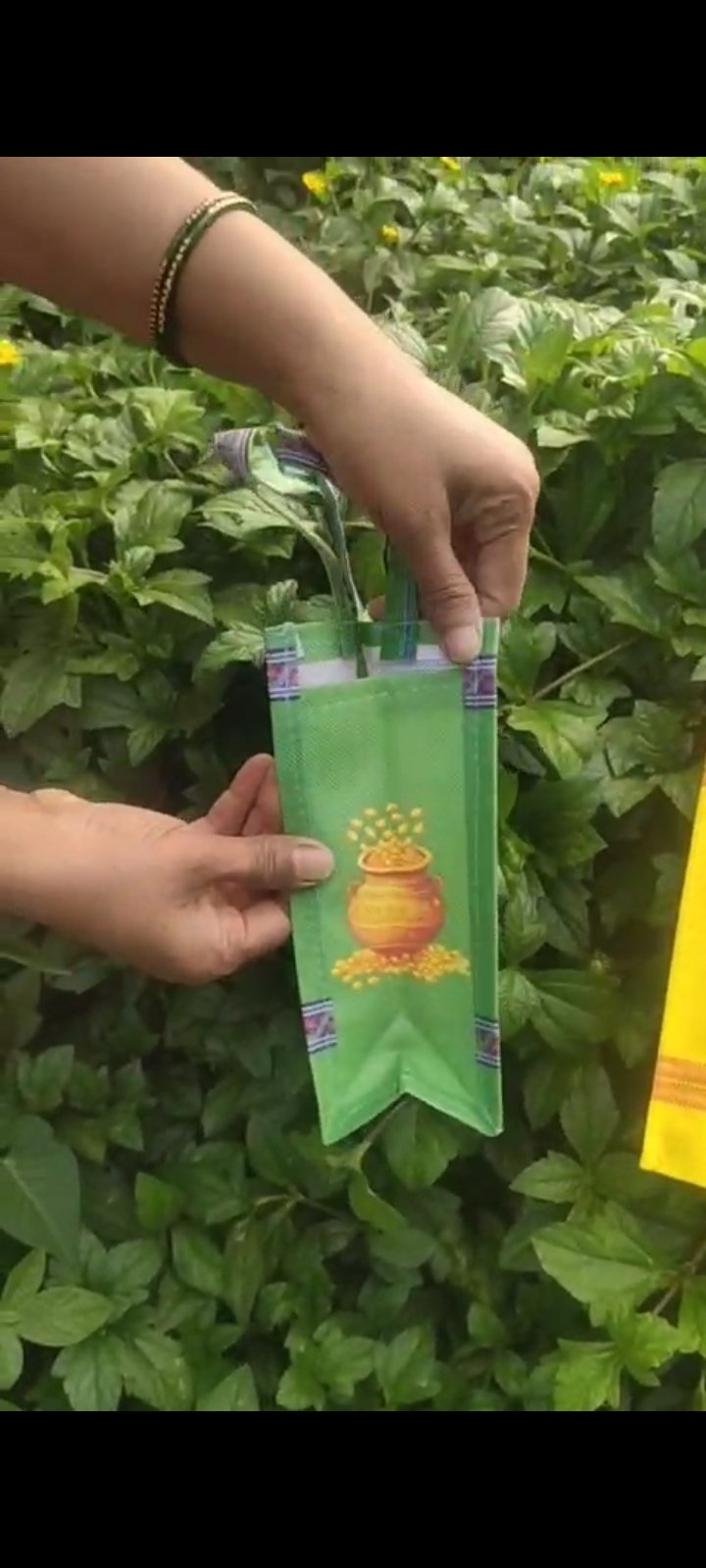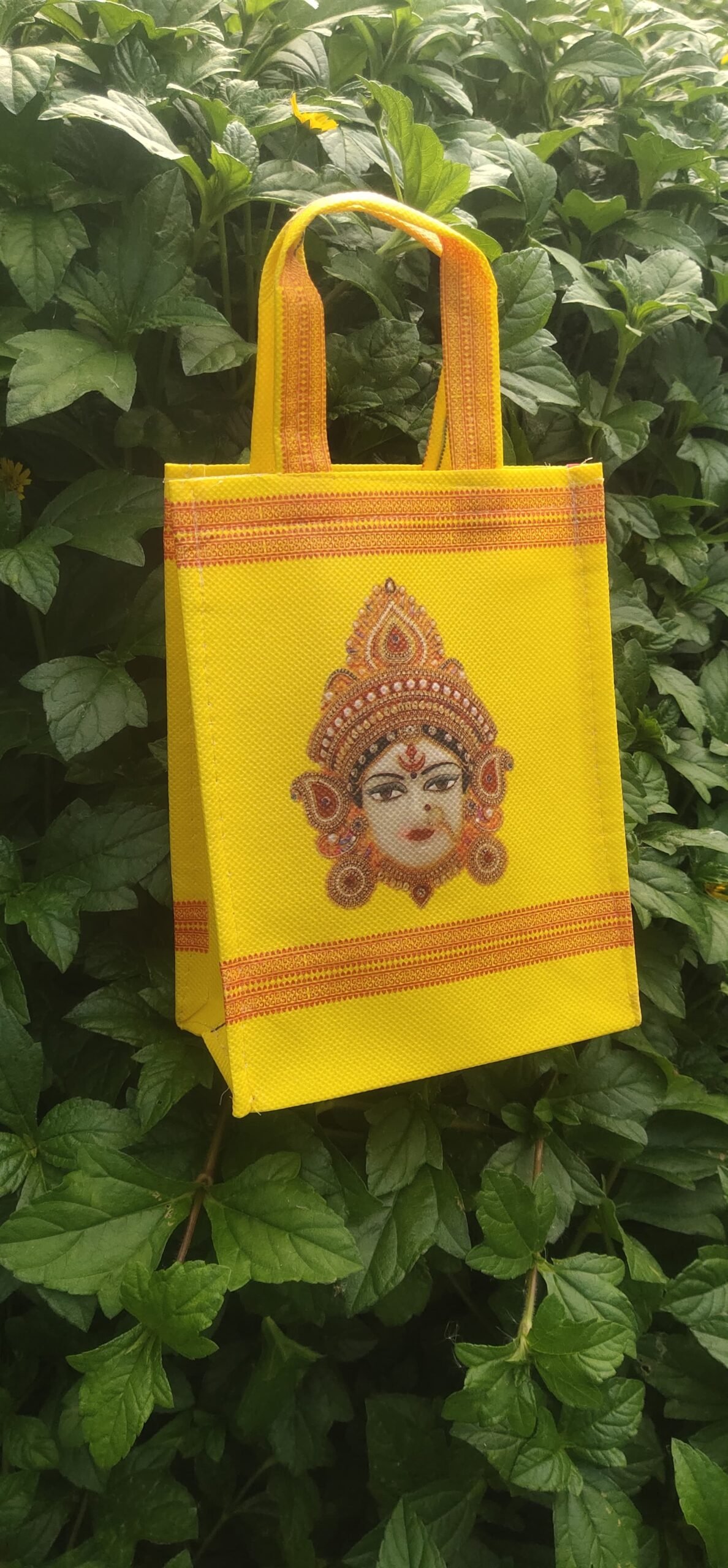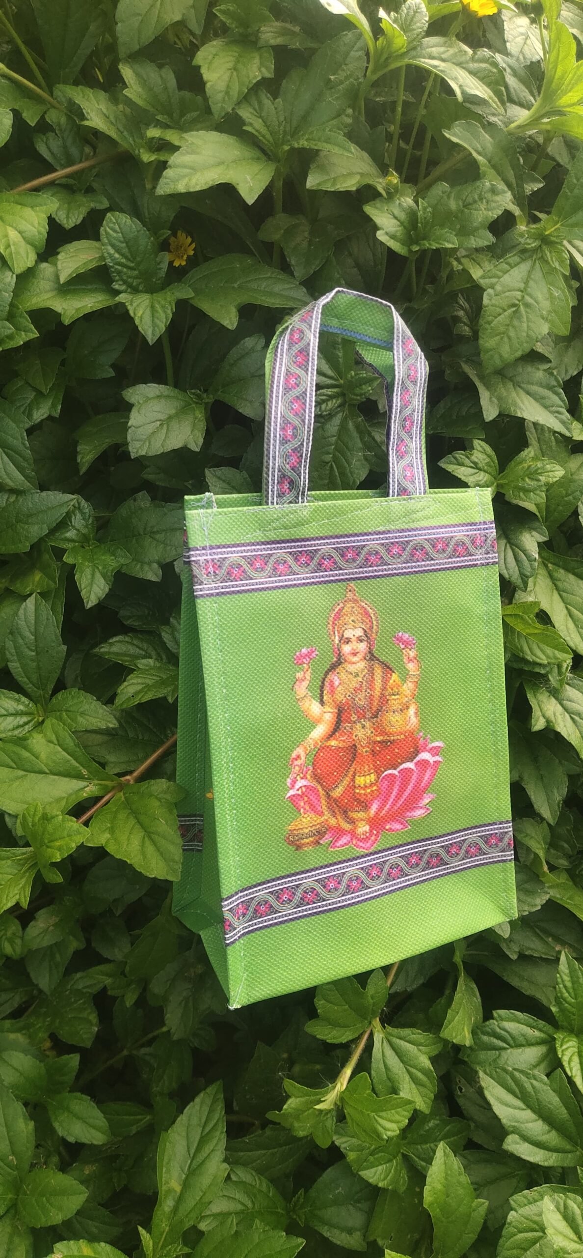 Durga bag side with mugulu, kolam design.